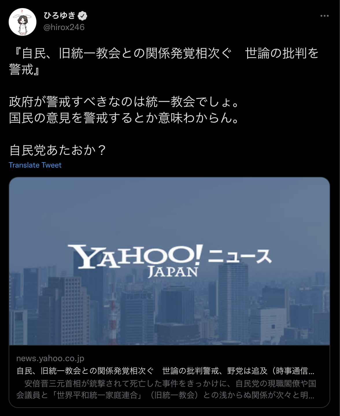 ひろゆきって統一教会叩きのときだけ正常になるよな