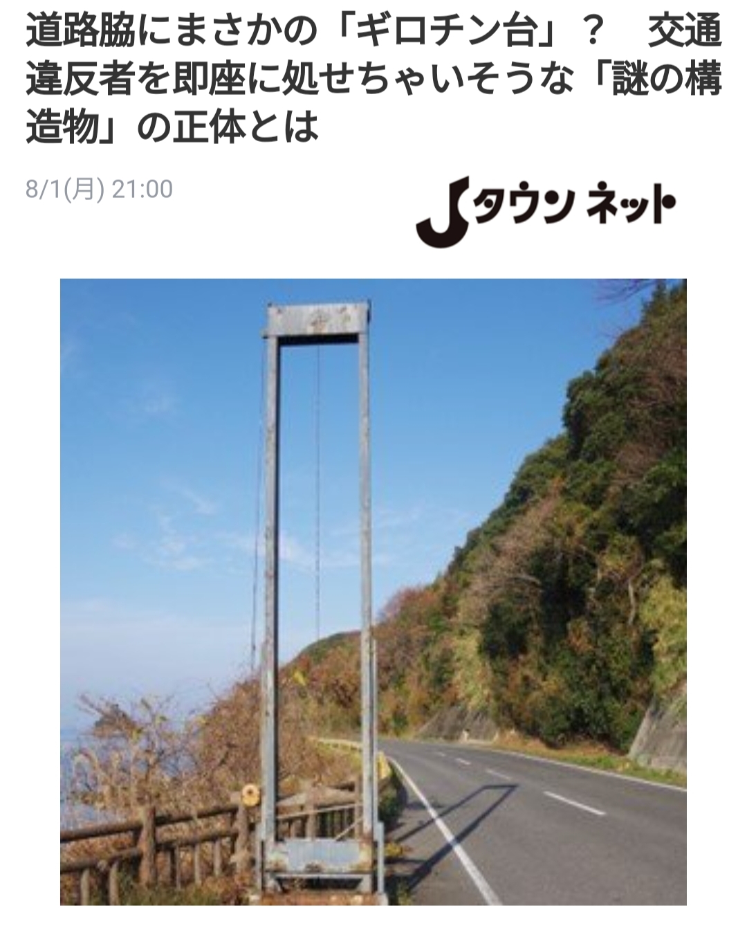 「路傍に設置された、唐突なギロチン台。交通違反者を即座に処せる便利な道路構造物......?!」