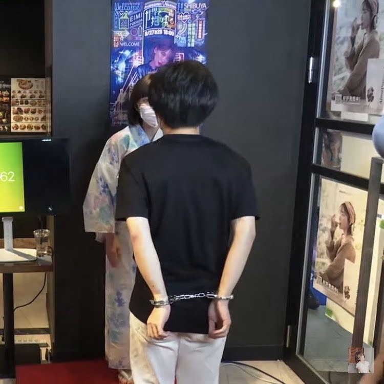 女は手錠無しでガキでも雄なら手錠しとるw
