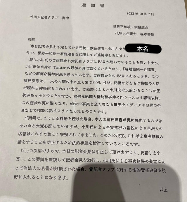 さおりさんが記者会見中止のFAX送ったら面白いのに