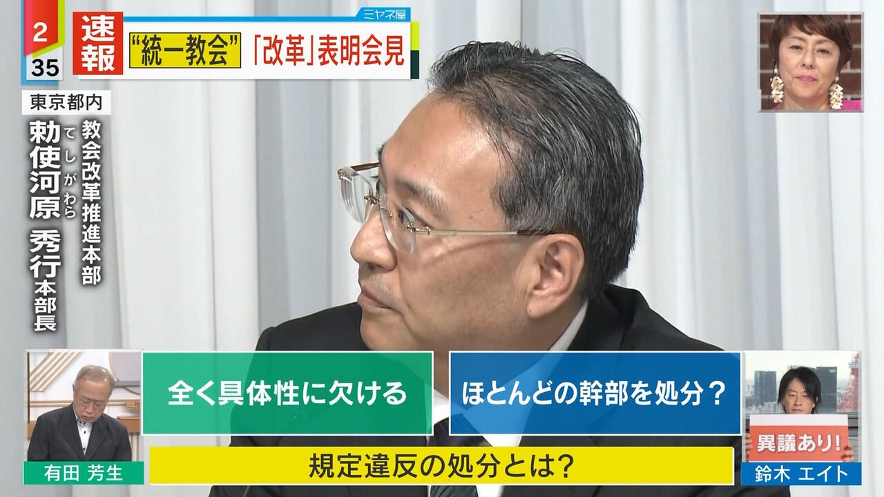 統一の会見を生中継して有識者のジャーナリストや弁護士に相席食堂みたいな形式でツッコミ入れさせたりしてる