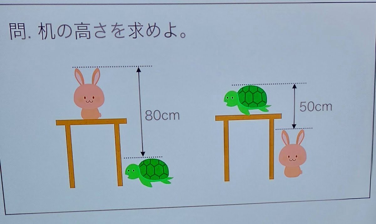 ウサギ=80ー机+カメ