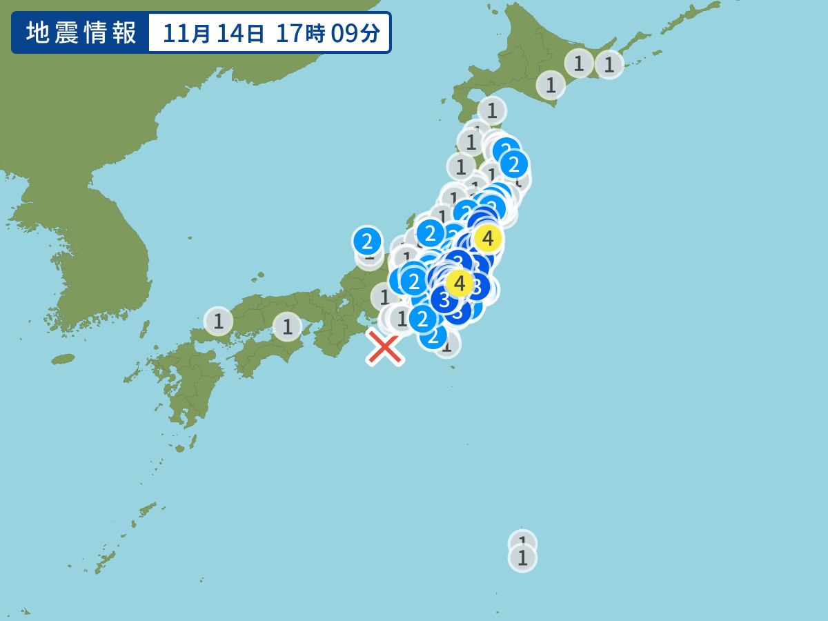 北米プレートのとこだけ揺れてんな