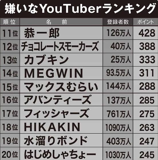 この登録者数の少なさでランクインってどういう事やねん