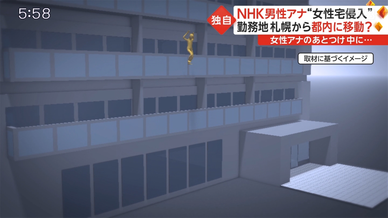 居合わせた女子アナの彼氏に捕まるも3階から飛び降りて逃走図る