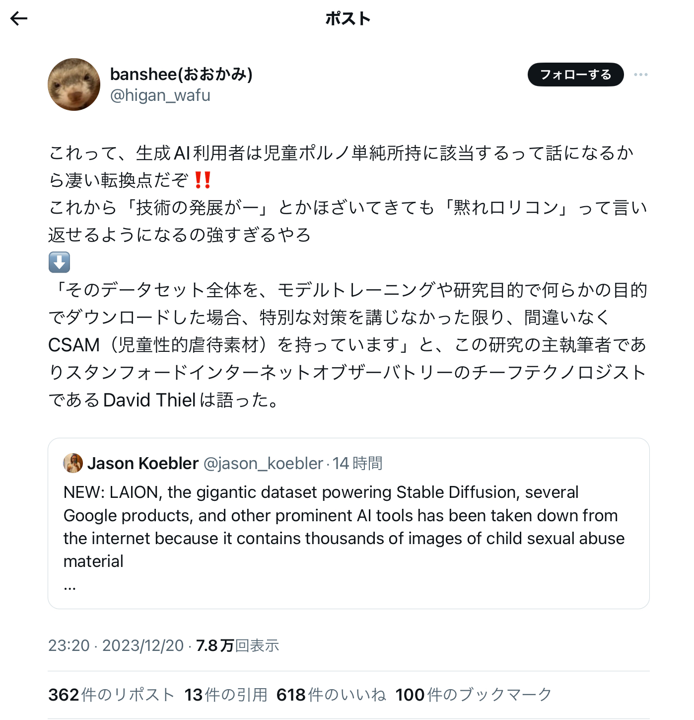 AIの学習データセットに大量の児ポと犯罪画像が含まれているのがバレた模様