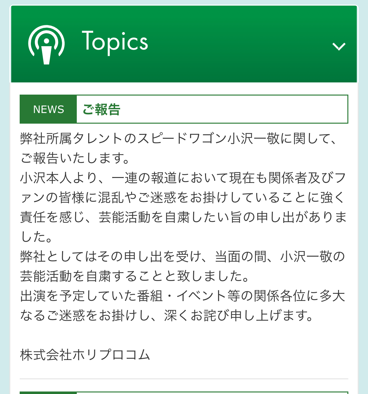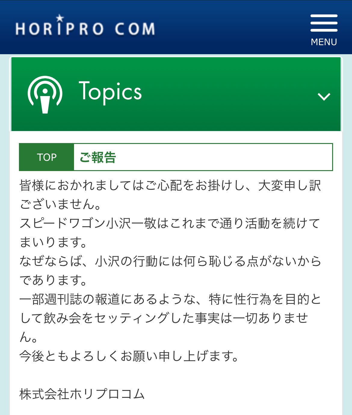 ホリプロは恥じる点がないって言ってるんだよね?