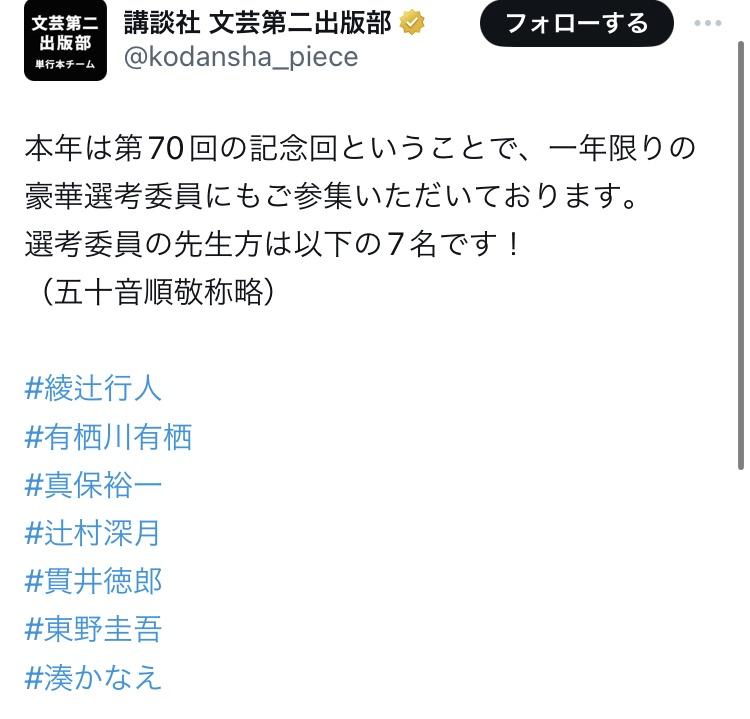最終選考員は豪華だね