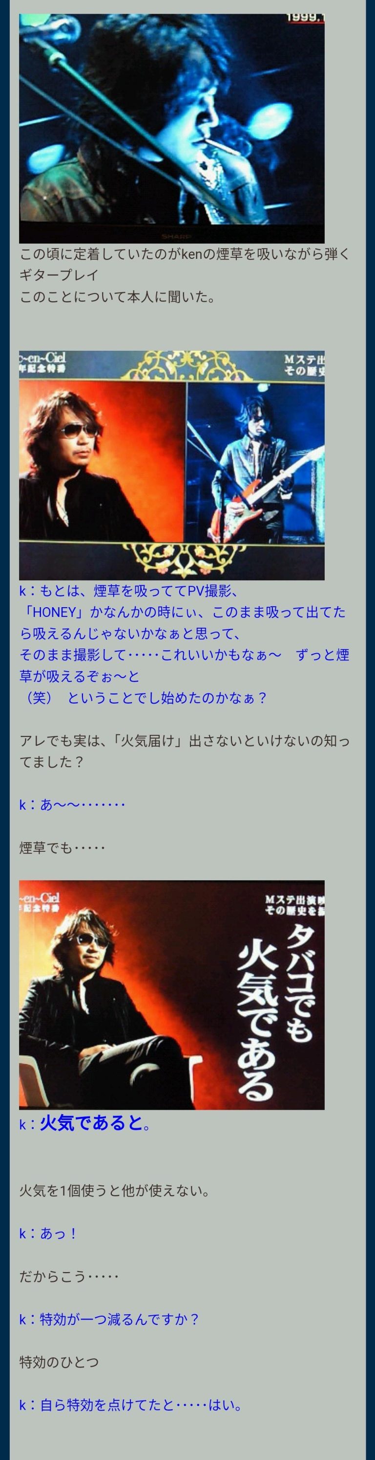 さすがに恥ずかしくなって活動再開して復活以降やめたかと思いきやなんか2005年くらいにМステでまたタバコ吸ってたような記憶がある