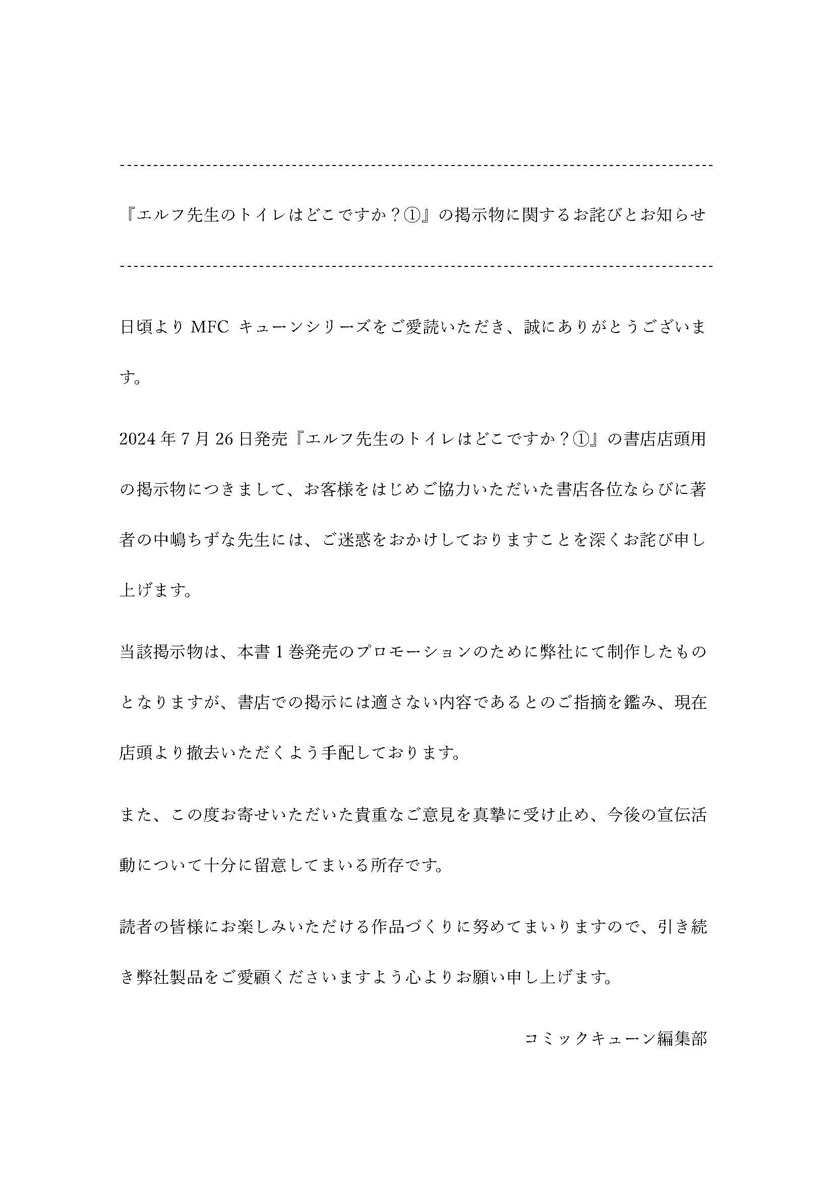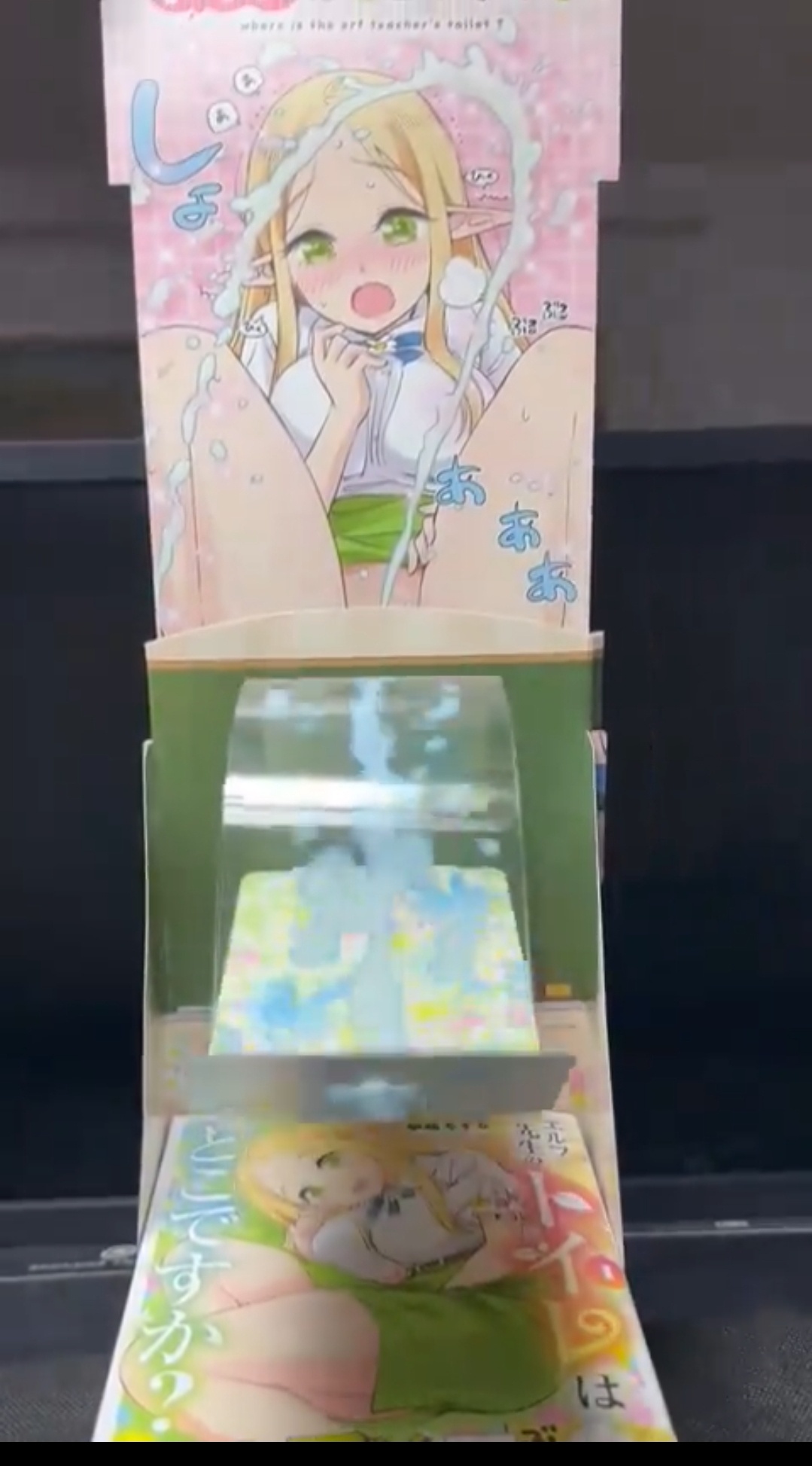 コミックキューンの漫画「エルフ先生のトイレはどこですか?」の書店掲示用POPが性的搾取だとフェミに燃やされる