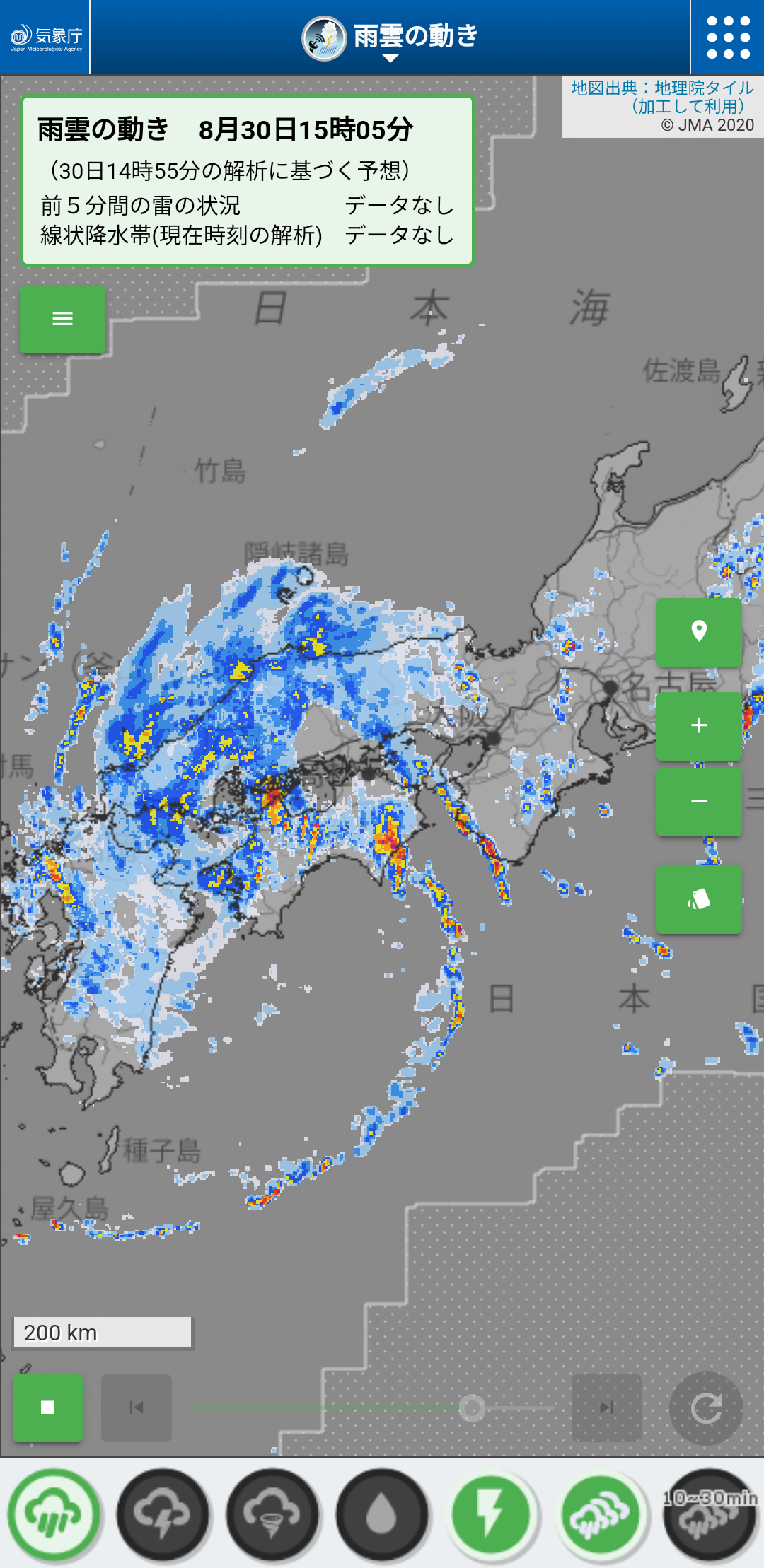 高知沖でチャージした雨雲がどこて線状降水帯になるかやな