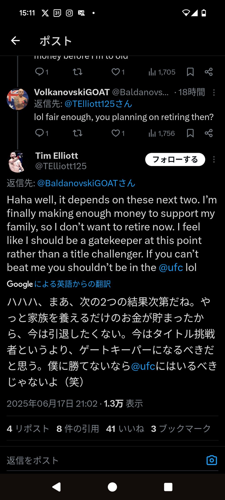 対戦相手さん「俺はUFCの門番レベル。俺に勝てない奴はUFCでもう用無し」