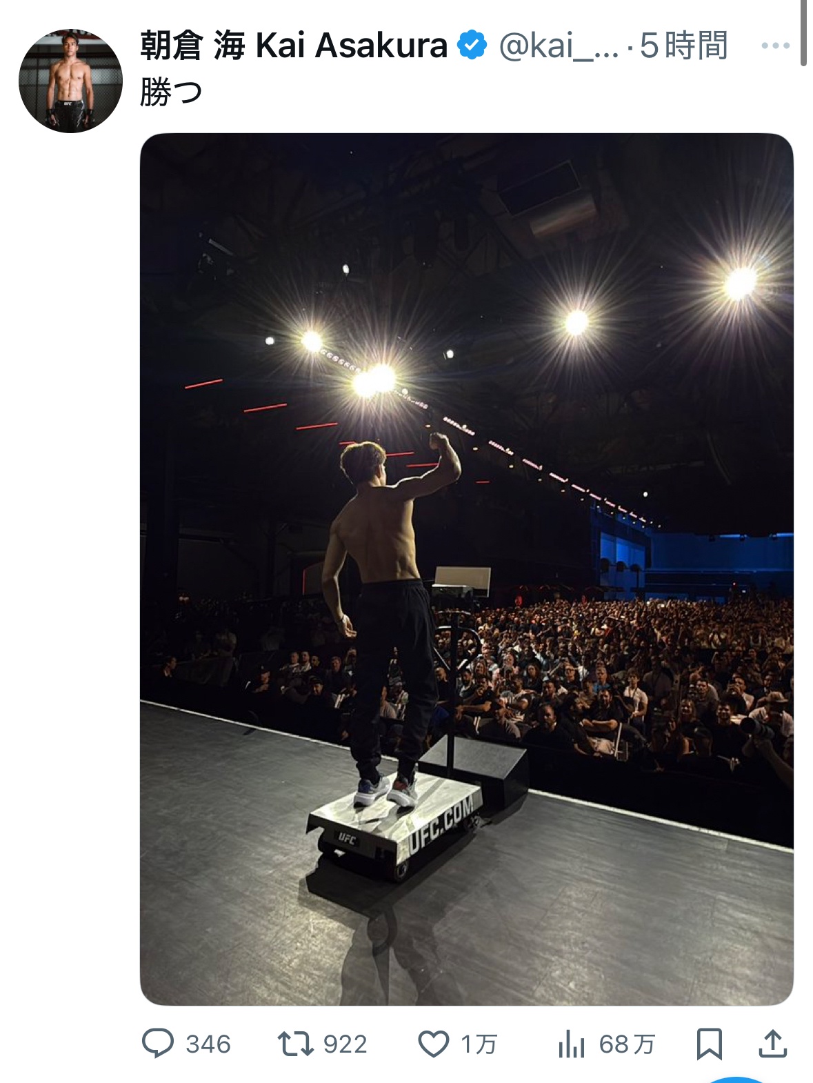 朝倉海 一本負け#UFC319 #朝倉海 #速報 pic.twitter.com/XdYvvX14u1