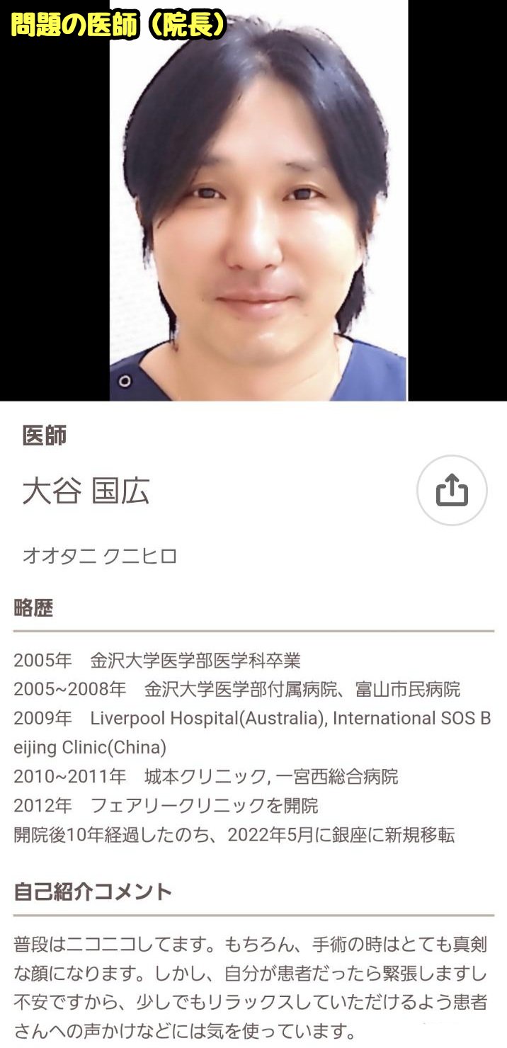 銀座の美容外科「フェアリークリニック」で、院長の大谷国広医師が患者女性をナンパ