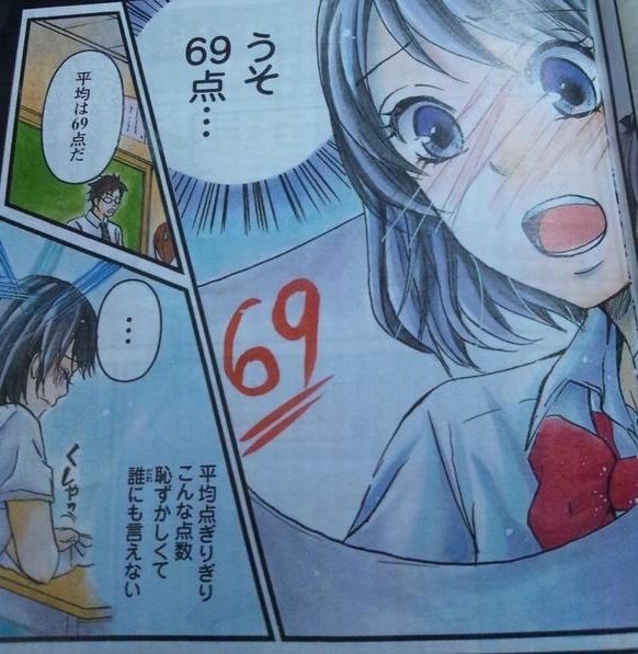 どうせなら69点で昨晩のシックスナイン思い出して顔真っ赤にしてるコラにすればいいのに