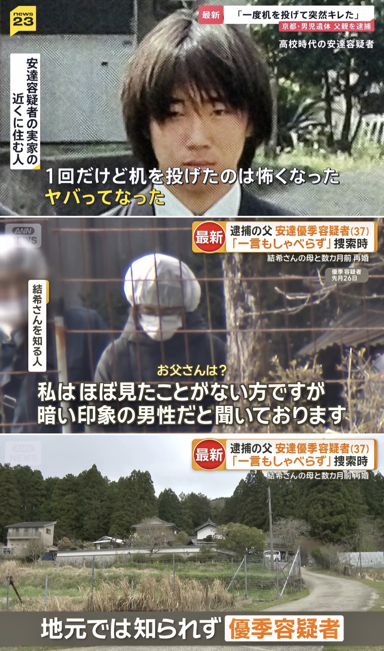 独自】安達容疑者「衝動的に首を絞めて殺した」 逮捕前の任意の調べで供述 ドラレコ映像が一部消去【京都小学生行方不明】