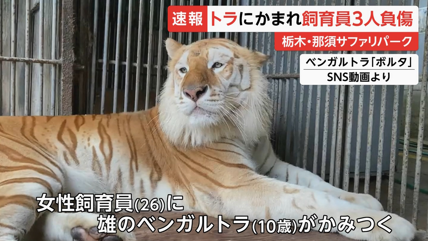 園内で飼育されているのはベンガルトラの「ボルタ」「トラ」「ジョン」の3匹。