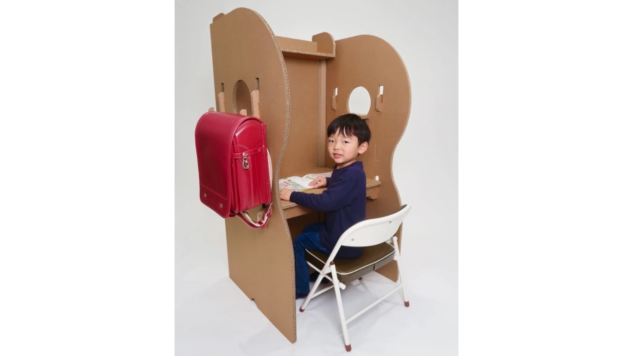 ジリリタ株式会社が作るダンボール製デスクに、小学生の座高に合わせて天板を付け替えられる「SOiRO-U(ソイロ・ユー)」が仲間入りしました。