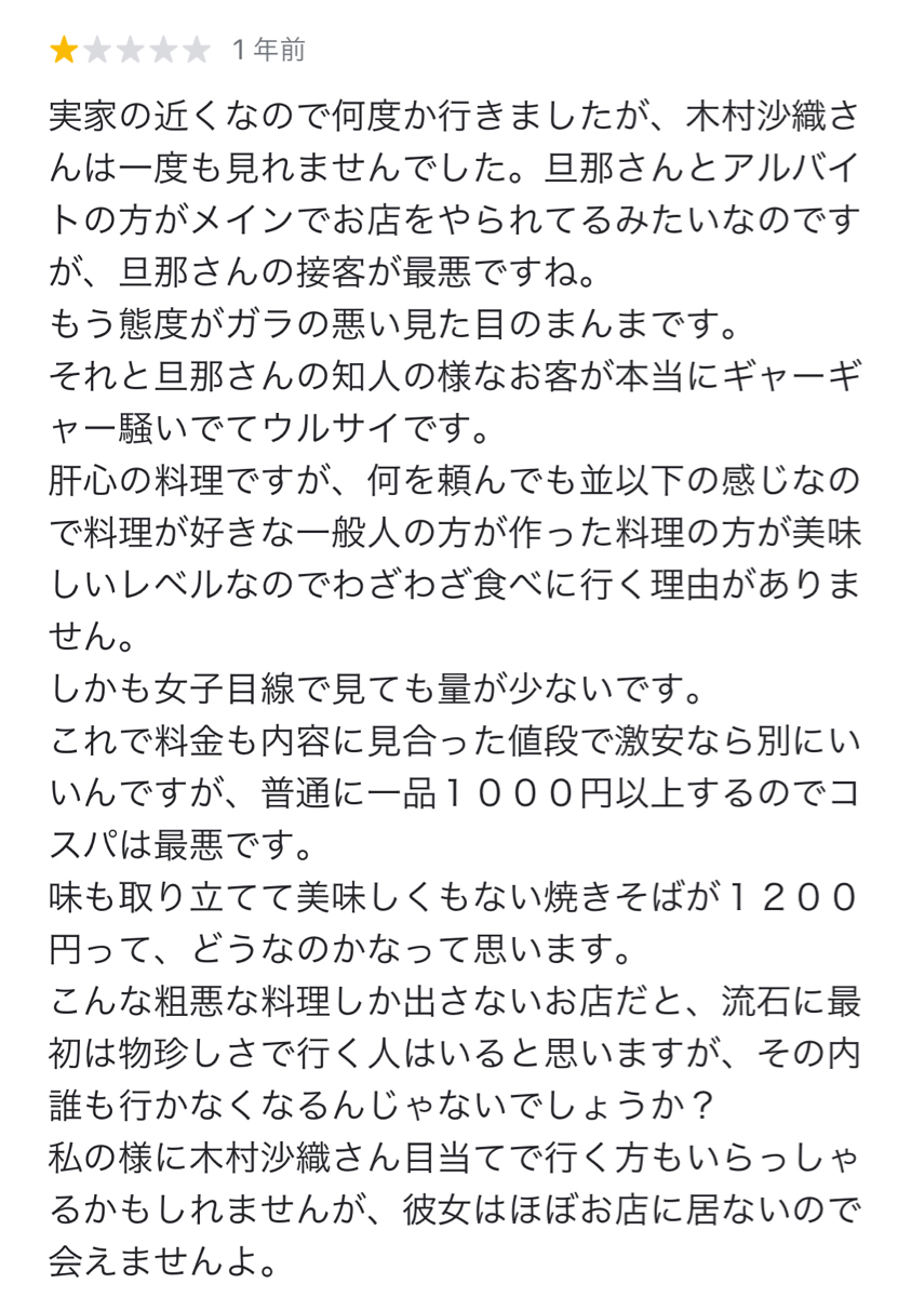 えぇ…木村沙織本人おらんのかい…そら低評価しか付けんわ